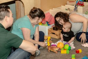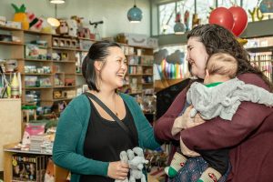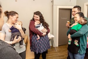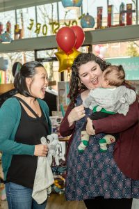 To celebrate I invited all of my past doula clients to join me in the playroom at Hammer and Jack’s toy store for an afternoon of cupcakes and baby cuddles. I asked my friend/business sister Ashlie of Ashlie Behm Photography to come along and take pictures. I made an adorable invitation. Looking forward to this birthday party made my entire week. When I woke up on Saturday morning itself, I had that familiar excitement in the pit of my stomach – it really felt like a birthday!